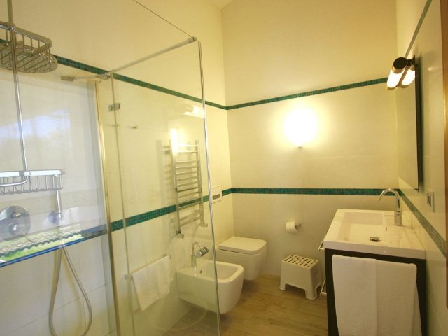 Op de begane grond zijn drie tweepersoonskamers, die twee badkamers delen. Een eenpersoonskamer met een twijfelaar is toegankelijk via een gang vanuit de keuken. Deze slaapkamer heeft ook een eigen badkamer en wasruimte. Boven bevindt zich de mooiste slaapkamer van het huis, die is voorzien van een Frans balkonnetje en een en suite-badkamer.