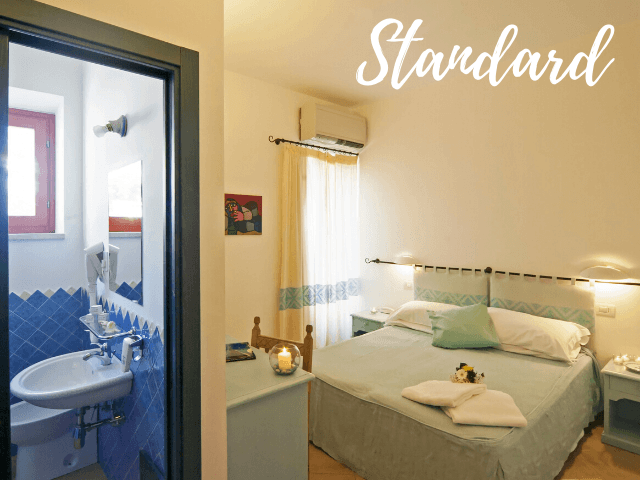 Het nette en centraal gelegen 3-sterren hotel Bue Marino telt 31 hotelkamers verdeeld over tweepersoonskamers met of zonder zeezicht en royale junior suites. Ook een 4-persoons familiekamer bestaande uit 2 aparte kamers is aanwezig. De kamers zijn voorzien van een modern comfort en hebben een eigen badkamer, airconditioning en Wi-Fi. Een aantal kamers heeft ook een balkon.