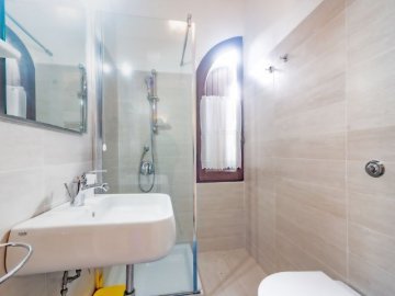 Villa Moresca maakt deel uit van een groot landgoed bestaande uit drie villa's, waaronder Naburige Villa Mediterranea, met toegang vanaf de hoofdweg van Monte Nai (via Ichnusa) en dicht bij de zee, die direct vanaf de woning met een paar treden via een kort voetpad direct te bereiken is van te bereiken. Winkels en restaurants zijn met een korte wandeling te bereiken, zodat de auto het grootste deel van de tijd geparkeerd kan blijven. Villa Moresca is een vrijstaande villa, gedeeltelijk omheind en iets hoger gelegen ten opzichte van de straat, waardoor u zelfs de zee kunt zien. Het is gescheiden van de Via Ichnusa door dikke heggen die rust en privacy garanderen.